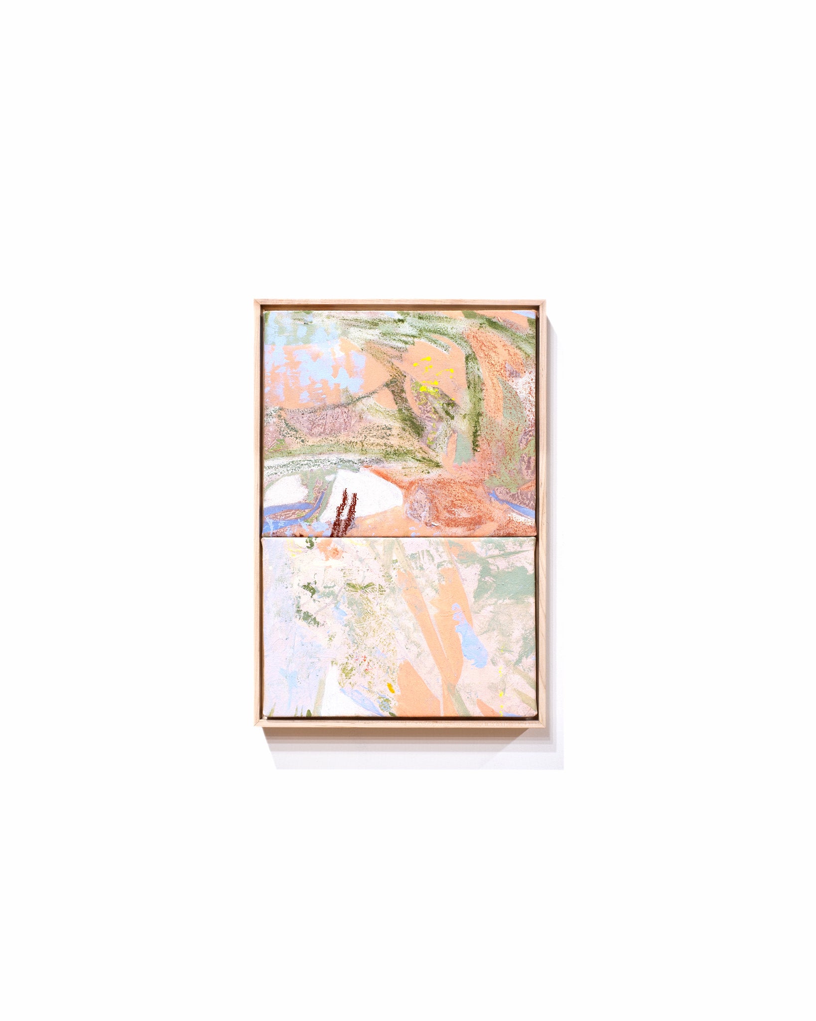 - acrylic, flashe, oil pastel, oil stick, plastic on two canvases
